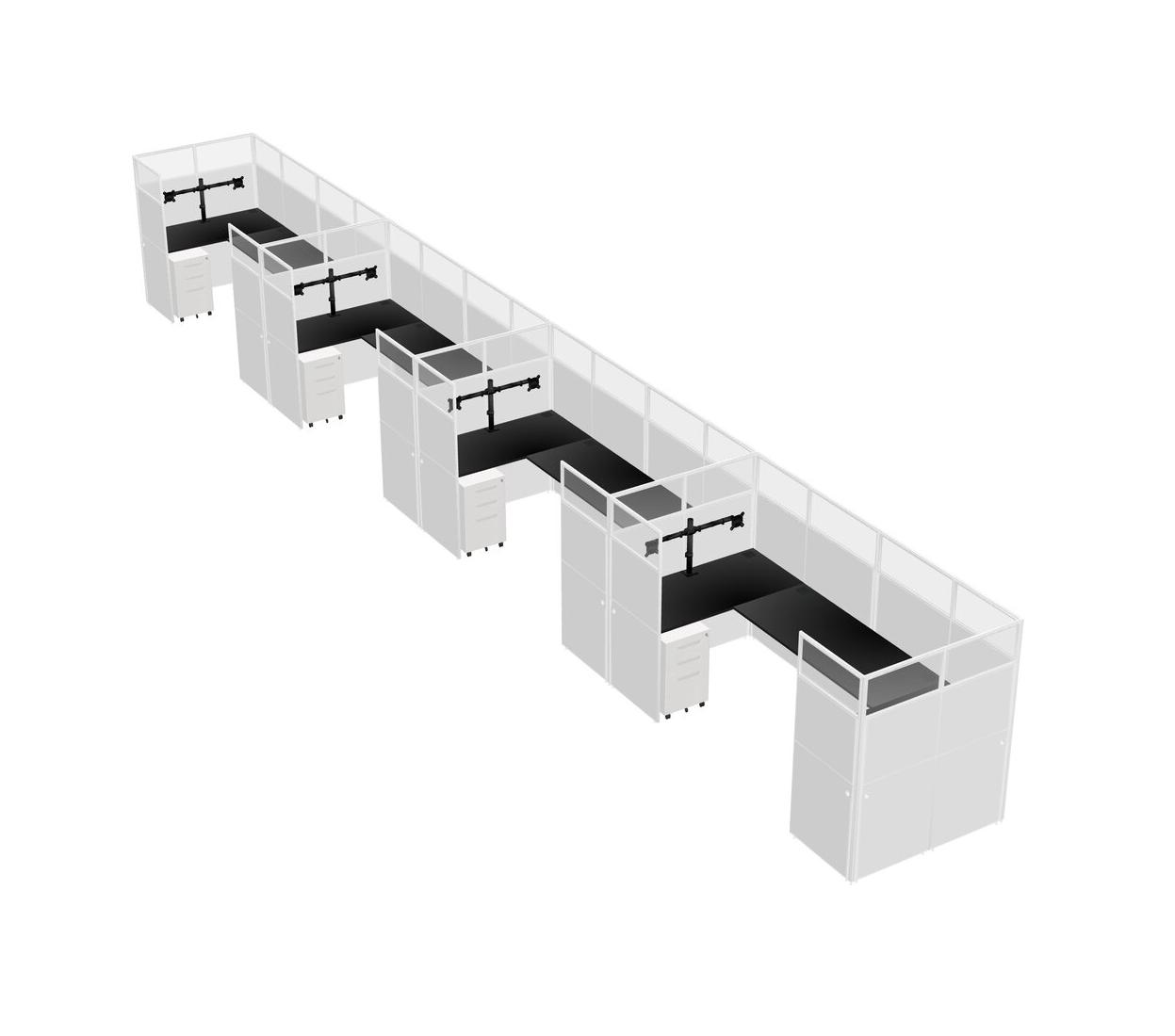 Black U-shaped Panel System For 4 Person + Monitor Arm (double Arms) + Metal Mobile Drawers For 4 User(s)