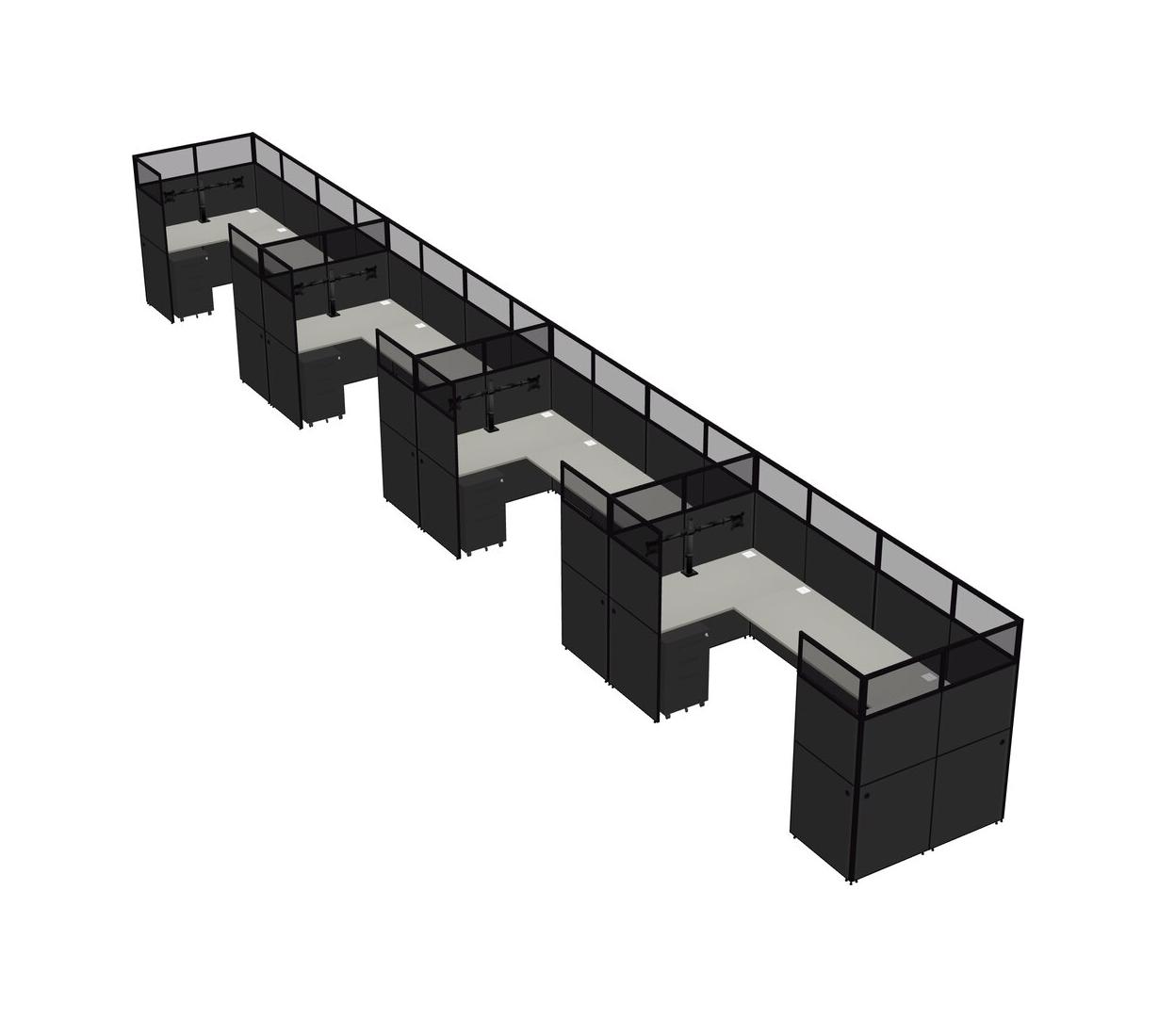 Grey Shadows U-shaped Panel System For 4 Person + Monitor Arm (double Arms) + Metal Mobile Drawers For 4 User(s)