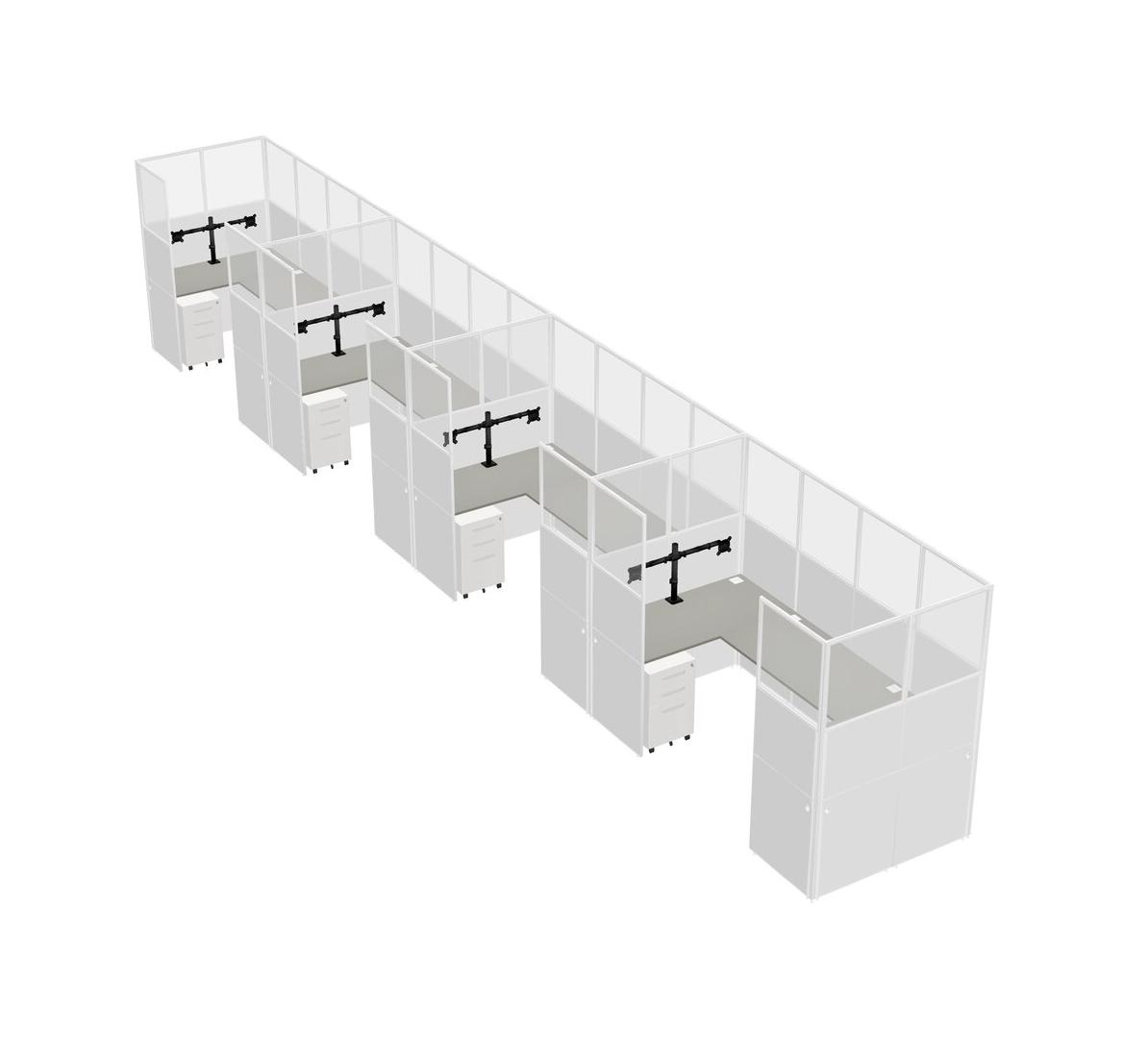 Grey Shadows U-shaped Panel System For 4 Person + Monitor Arm (double Arms) + Metal Mobile Drawers For 4 User(s)