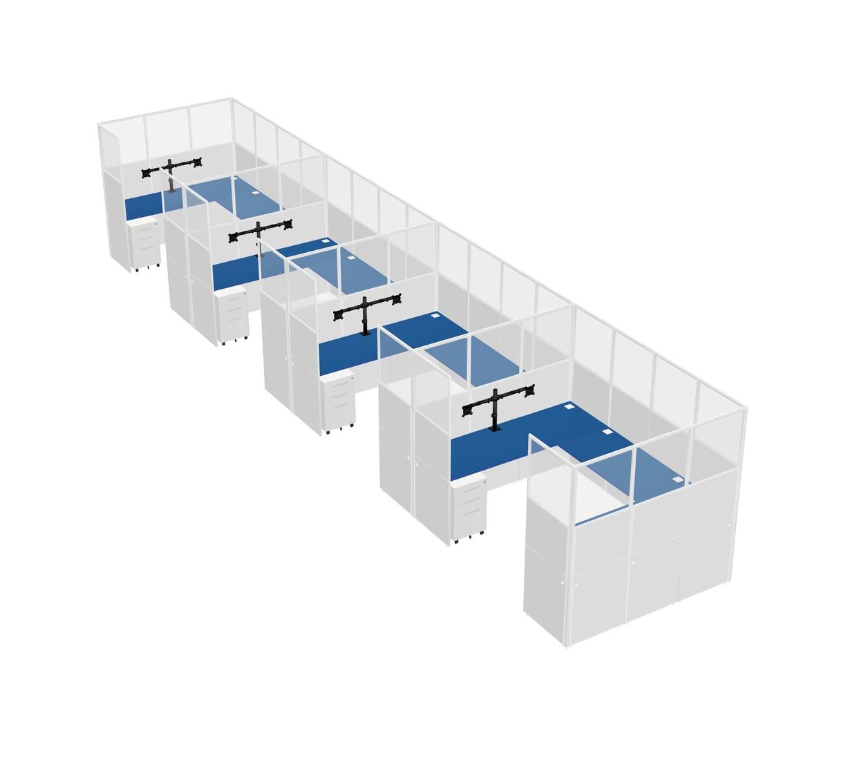 Prism Blue U-shaped Panel System For 4 Person + Monitor Arm (double Arms) + Metal Mobile Drawers For 4 User(s)