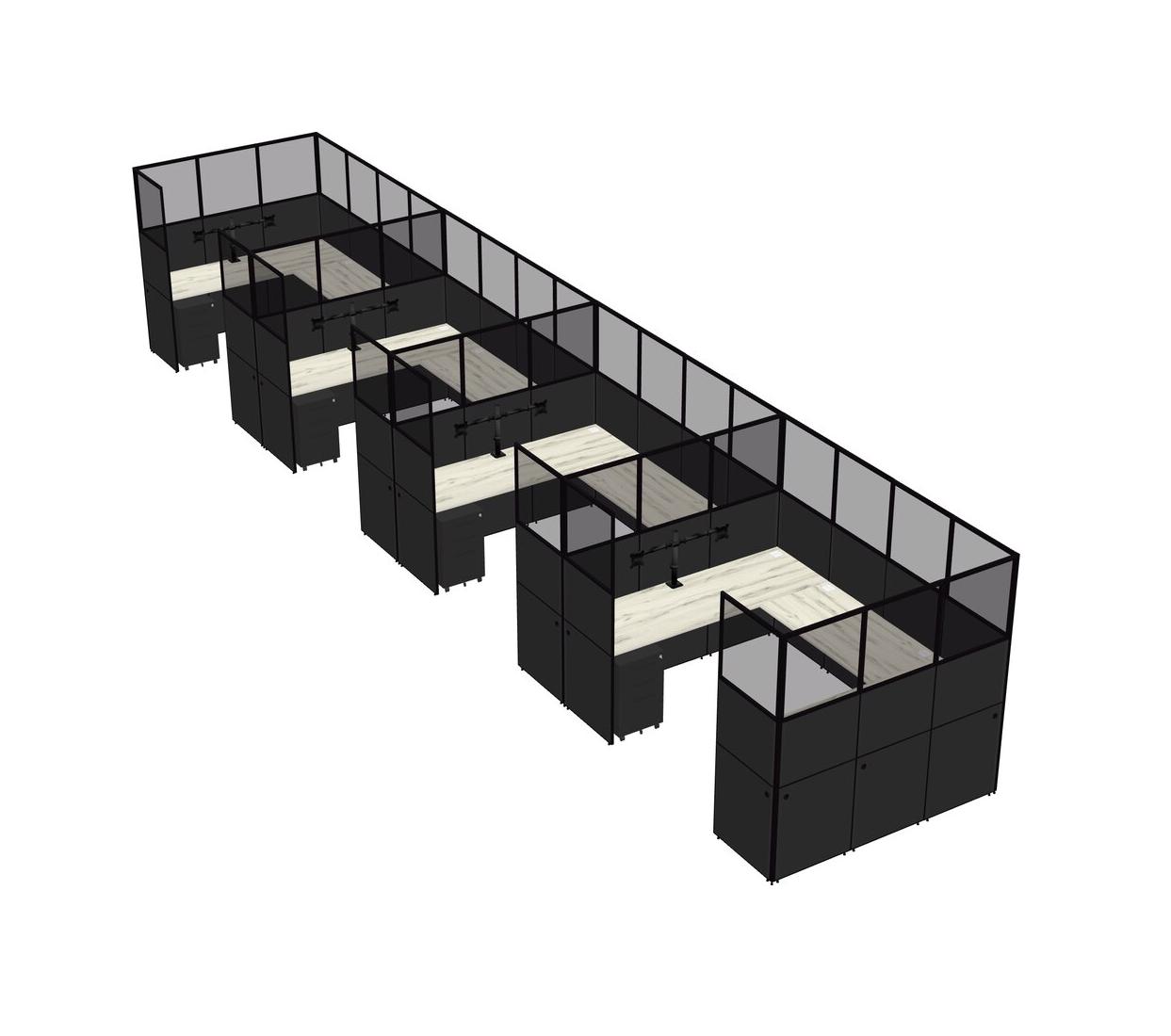 Heinne Holz U-shaped Panel System For 4 Person + Monitor Arm (double Arms) + Metal Mobile Drawers For 4 User(s)