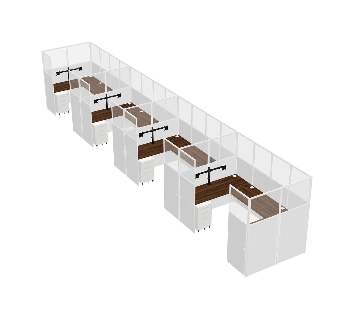 Columbia Walnut U-shaped Panel System For 4 Person + Monitor Arm (double Arms) + Metal Mobile Drawers For 4 User(s)