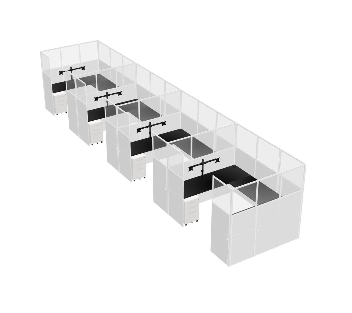 Black U-shaped Panel System For 4 Person + Monitor Arm (double Arms) + Metal Mobile Drawers For 4 User(s)