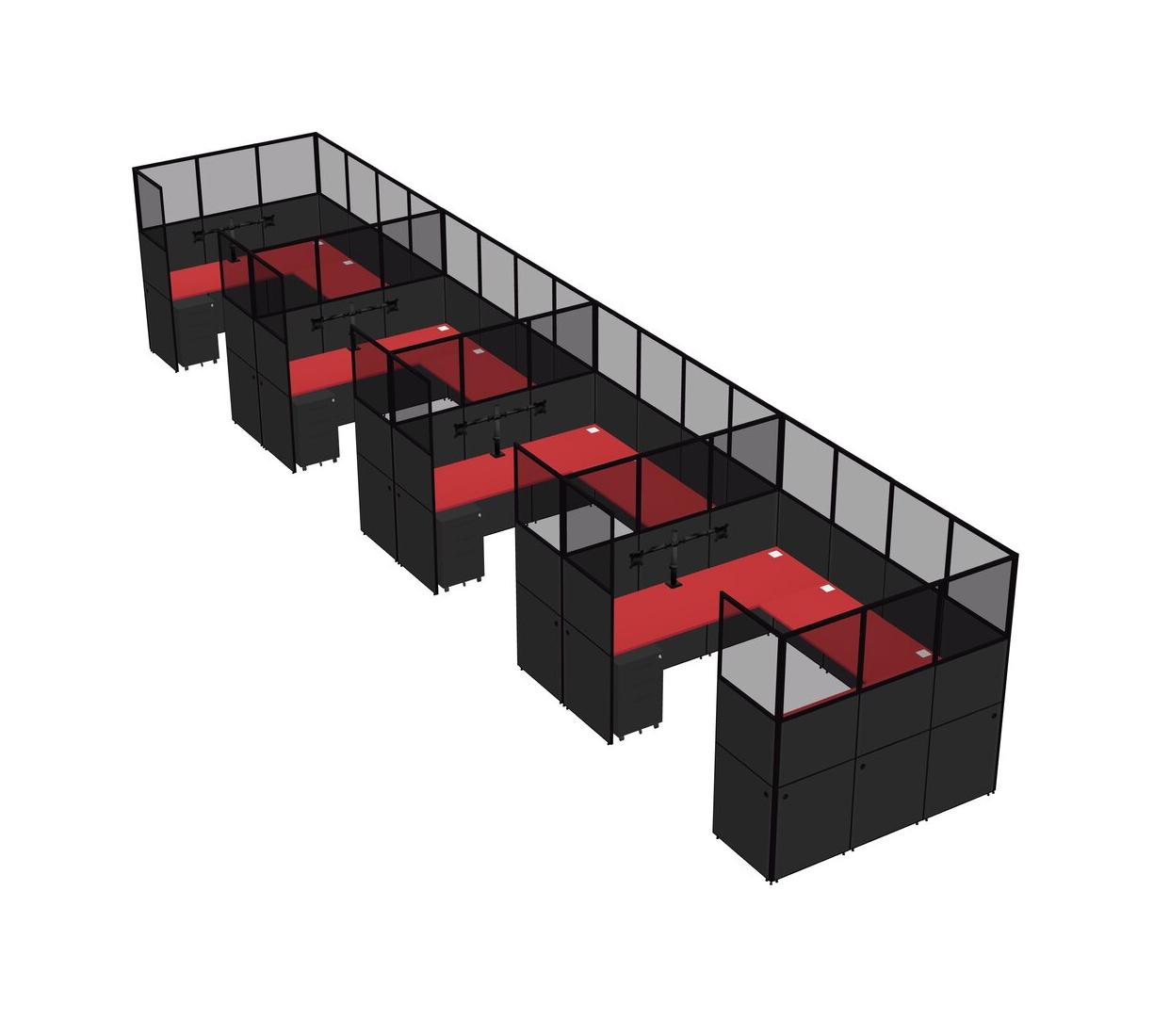 Prism Red U-shaped Panel System For 4 Person + Monitor Arm (double Arms) + Metal Mobile Drawers For 4 User(s)