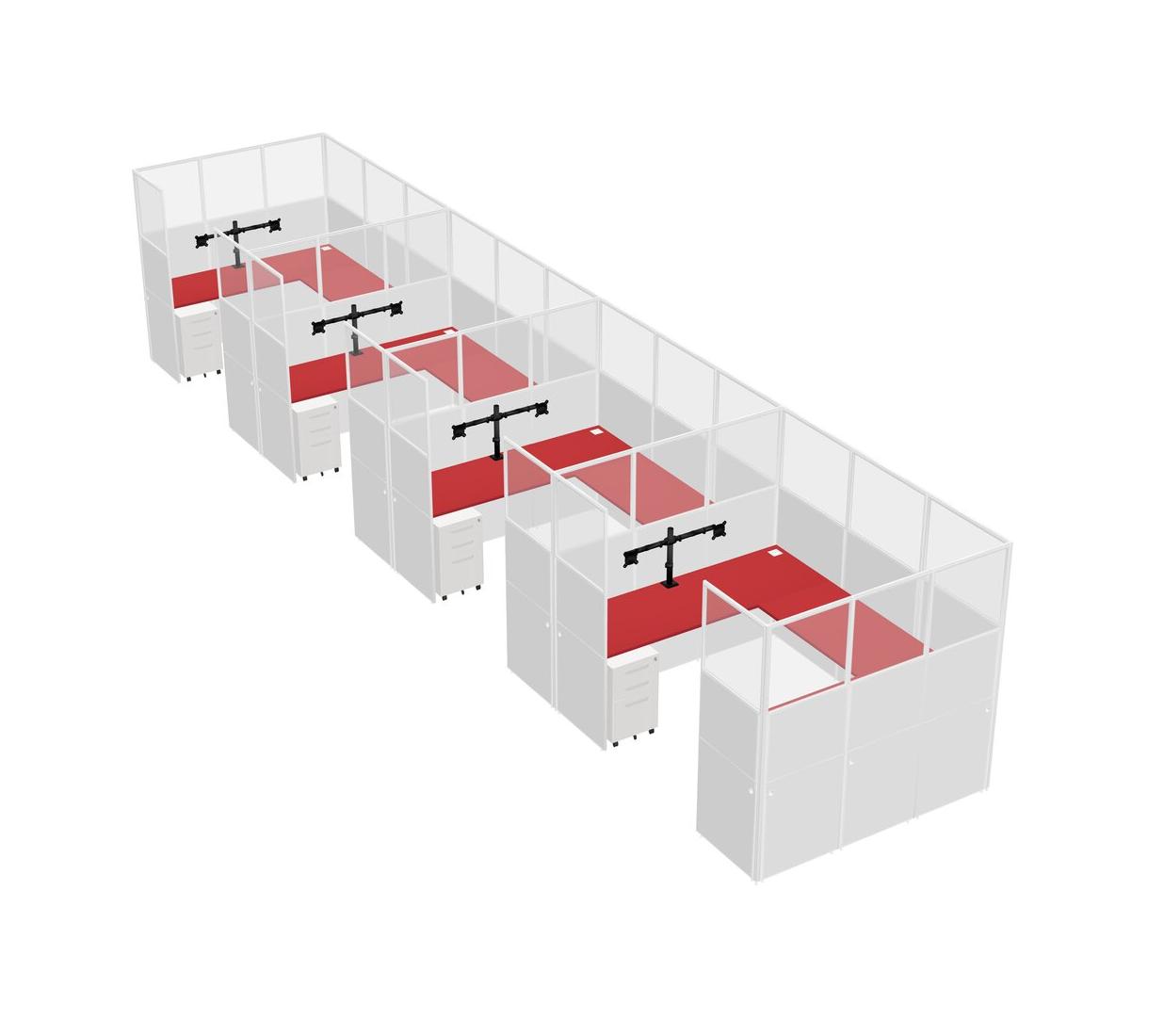 Prism Red U-shaped Panel System For 4 Person + Monitor Arm (double Arms) + Metal Mobile Drawers For 4 User(s)
