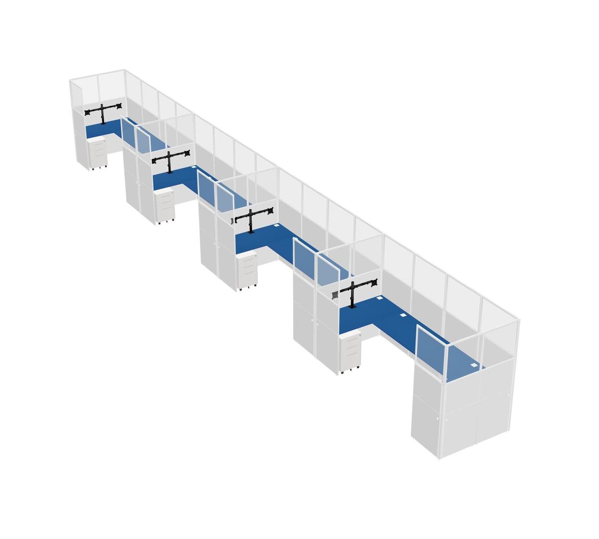 Prism Blue U-shaped Panel System For 4 Person + Monitor Arm (double Arms) + Metal Mobile Drawers For 4 User(s)