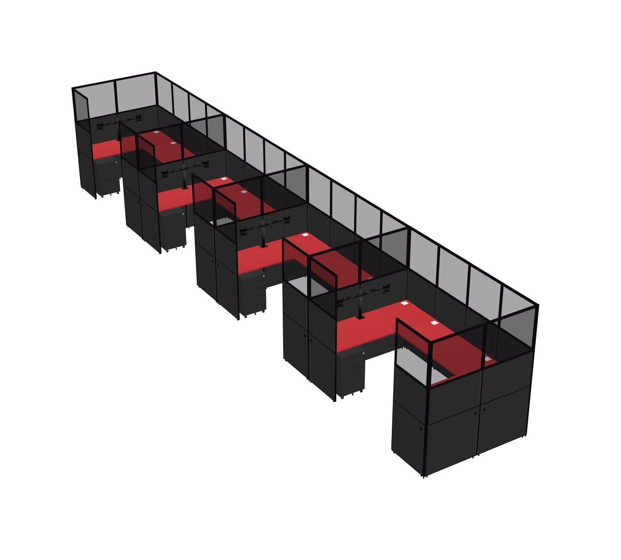 Prism Red U-shaped Panel System For 4 Person + Monitor Arm (double Arms) + Metal Mobile Drawers For 4 User(s)