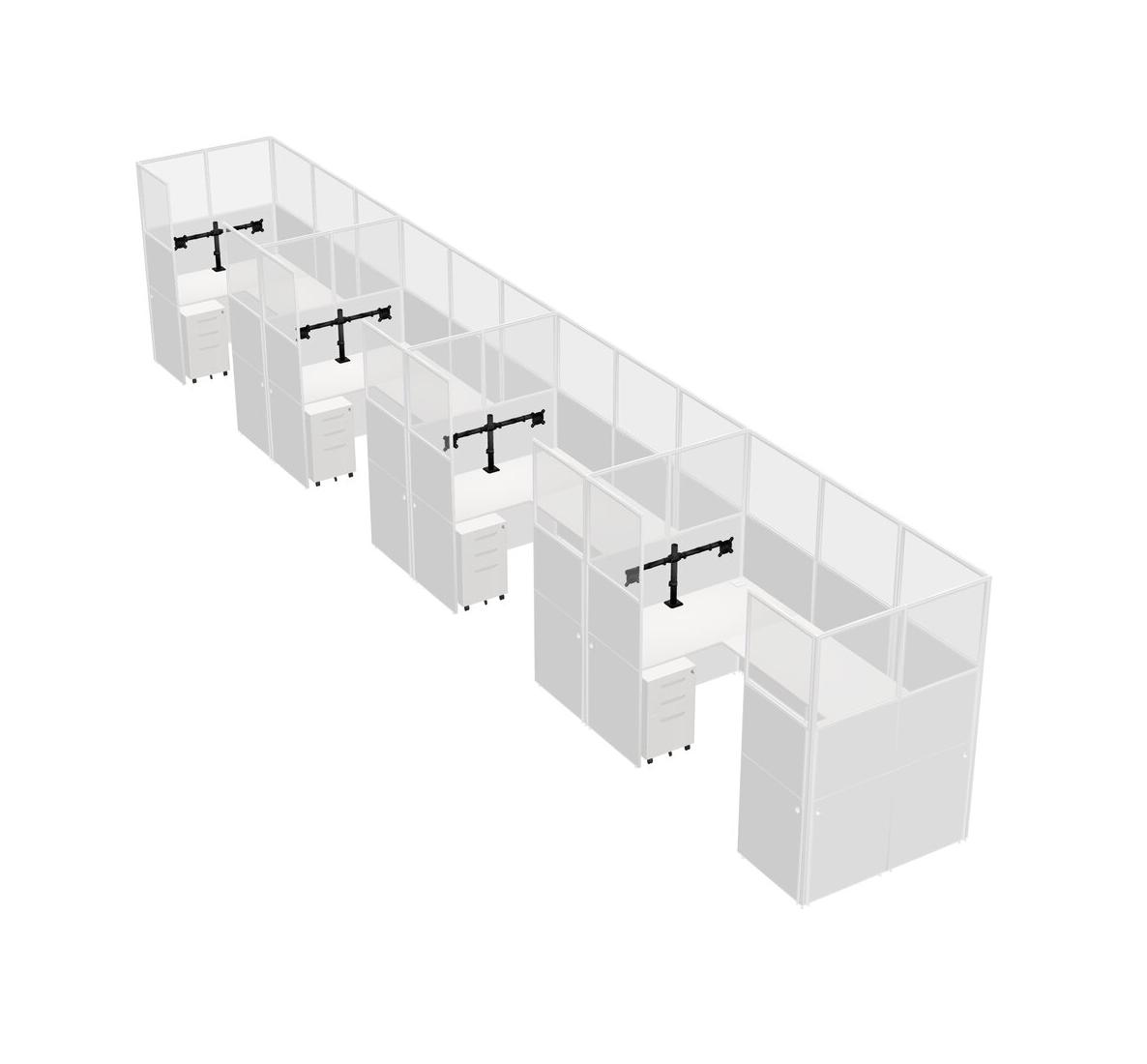 White U-shaped Panel System For 4 Person + Monitor Arm (double Arms) + Metal Mobile Drawers For 4 User(s)