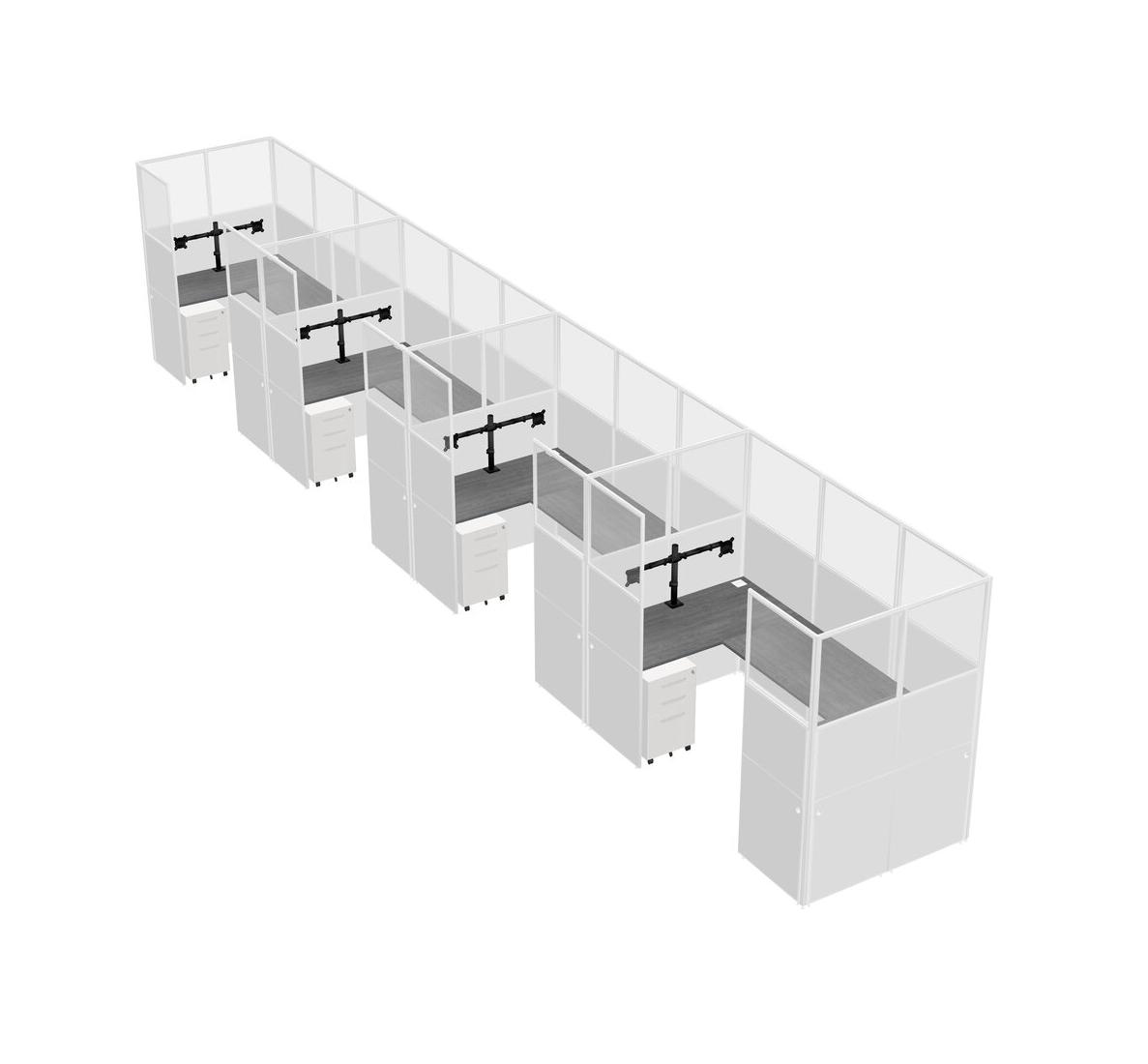 Grey U-shaped Panel System For 4 Person + Monitor Arm (double Arms) + Metal Mobile Drawers For 4 User(s)