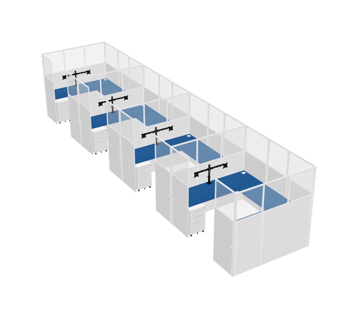 Prism Blue U-shaped Panel System For 4 Person + Monitor Arm (double Arms) + Metal Mobile Drawers For 4 User(s)