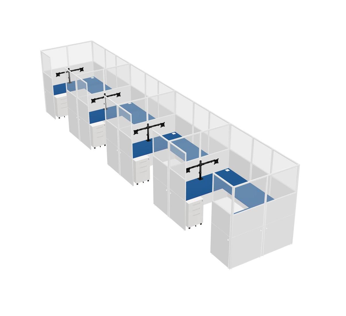 Prism Blue U-shaped Panel System For 4 Person + Monitor Arm (double Arms) + Metal Mobile Drawers For 4 User(s)