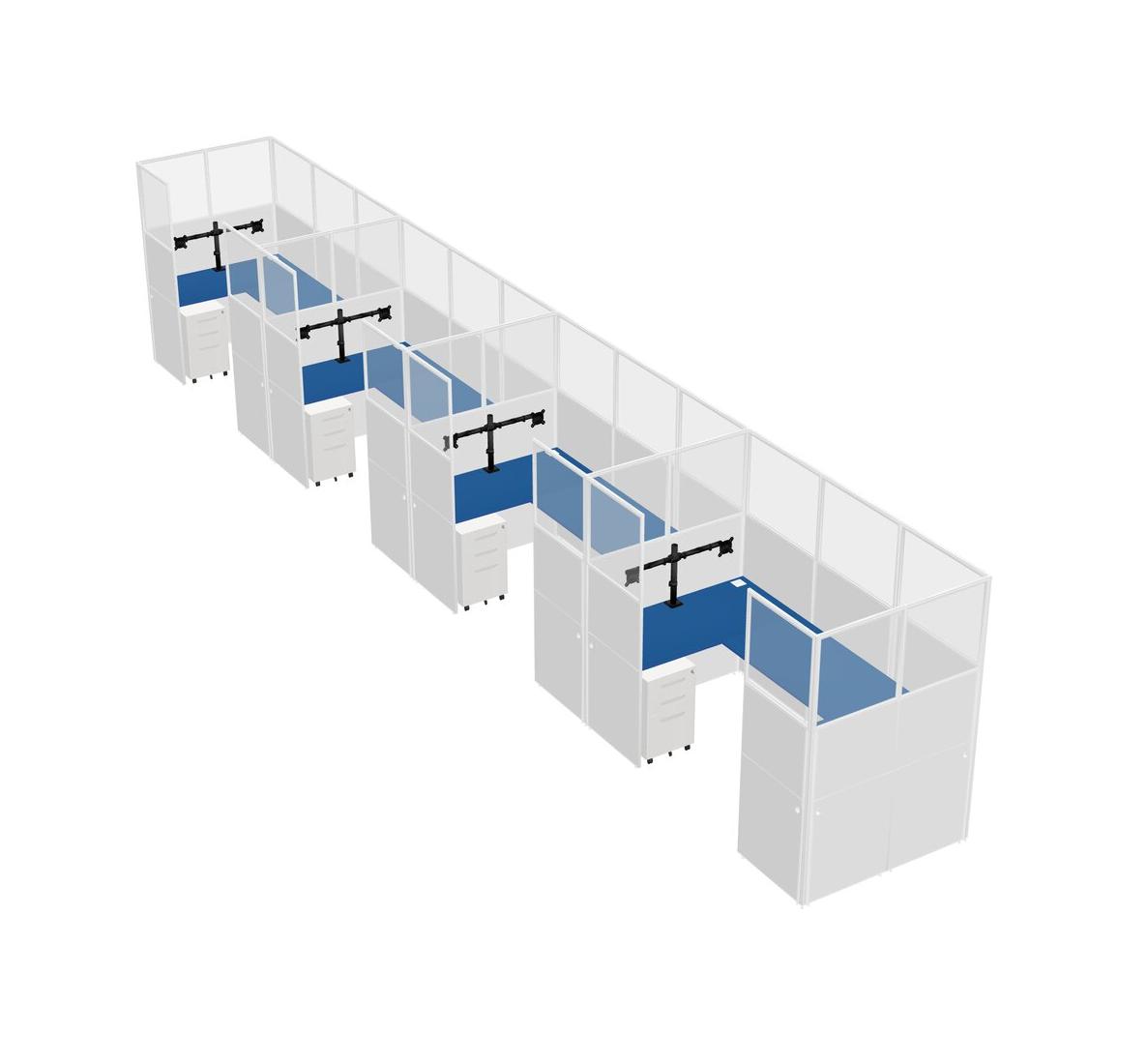 Prism Blue U-shaped Panel System For 4 Person + Monitor Arm (double Arms) + Metal Mobile Drawers For 4 User(s)