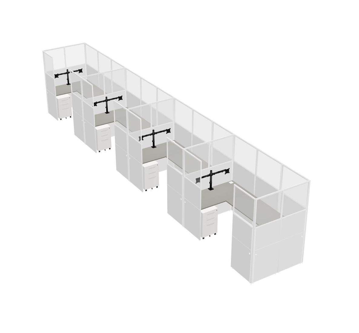 Grey Shadows U-shaped Panel System For 4 Person + Monitor Arm (double Arms) + Metal Mobile Drawers For 4 User(s)