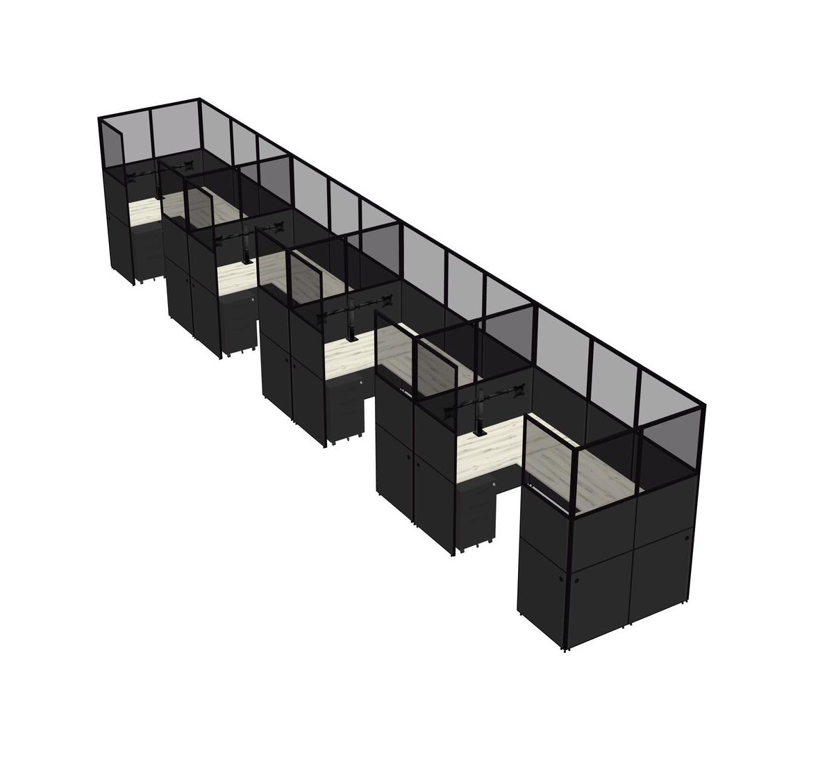 Heinne Holz U-shaped Panel System For 4 Person + Monitor Arm (double Arms) + Metal Mobile Drawers For 4 User(s)