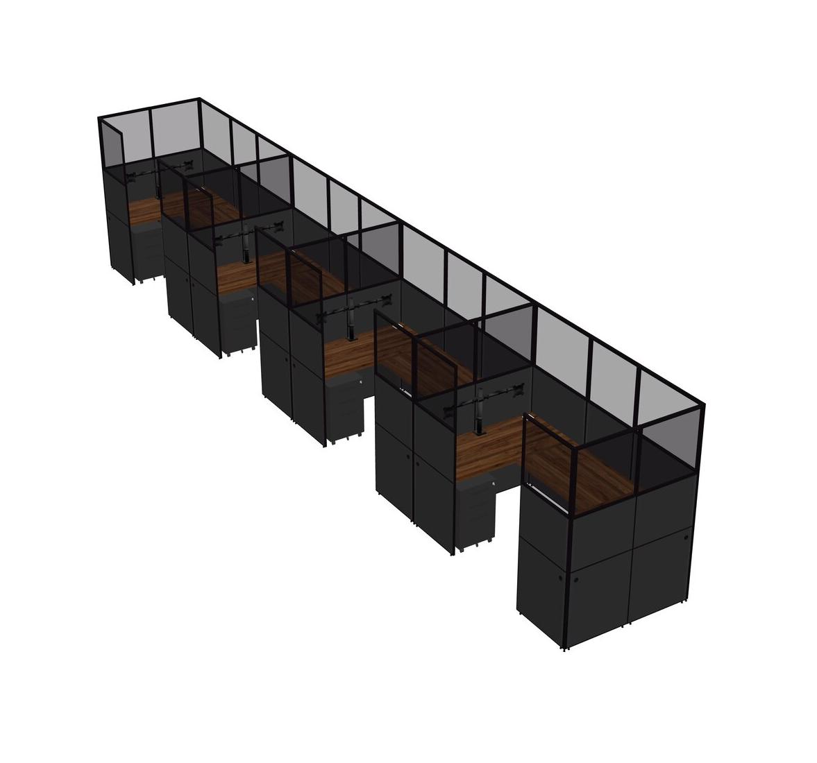 Columbia Walnut U-shaped Panel System For 4 Person + Monitor Arm (double Arms) + Metal Mobile Drawers For 4 User(s)