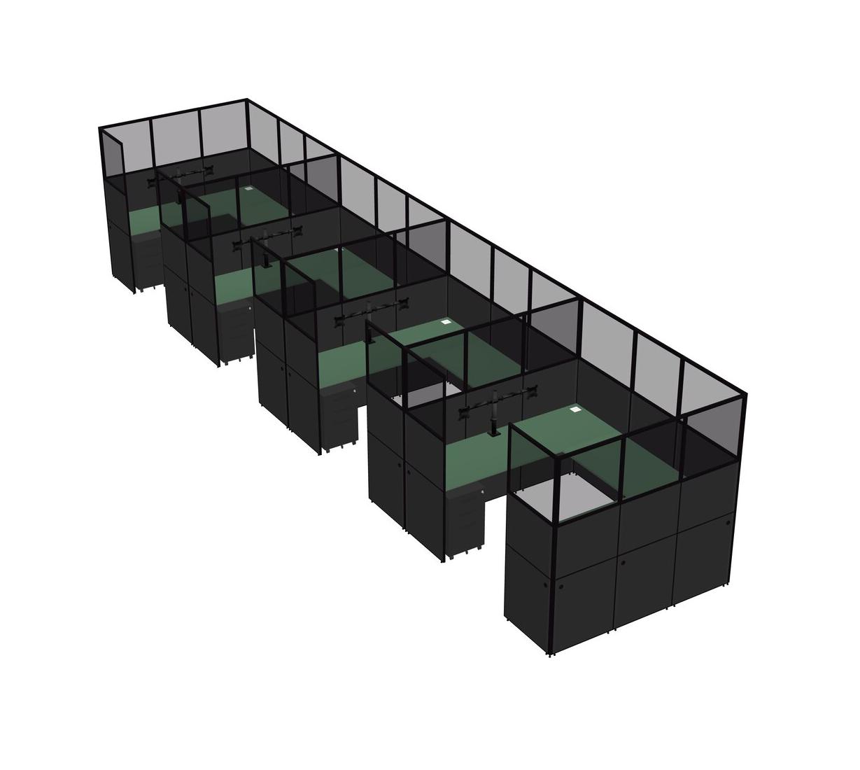Green U-shaped Panel System For 4 Person + Monitor Arm (double Arms) + Metal Mobile Drawers For 4 User(s)