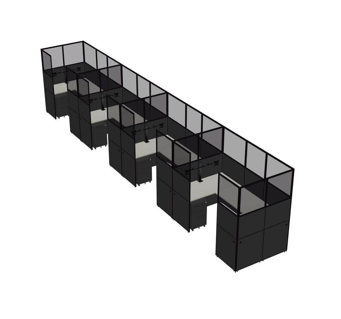 Grey Shadows U-shaped Panel System For 4 Person + Monitor Arm (double Arms) + Metal Mobile Drawers For 4 User(s)
