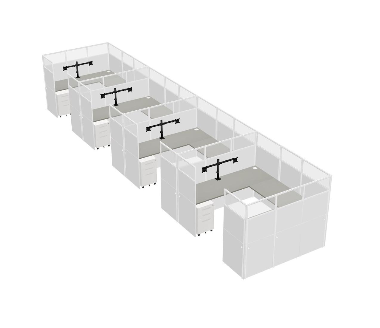 Grey Shadows U-shaped Panel System For 4 Person + Monitor Arm (double Arms) + Metal Mobile Drawers For 4 User(s)