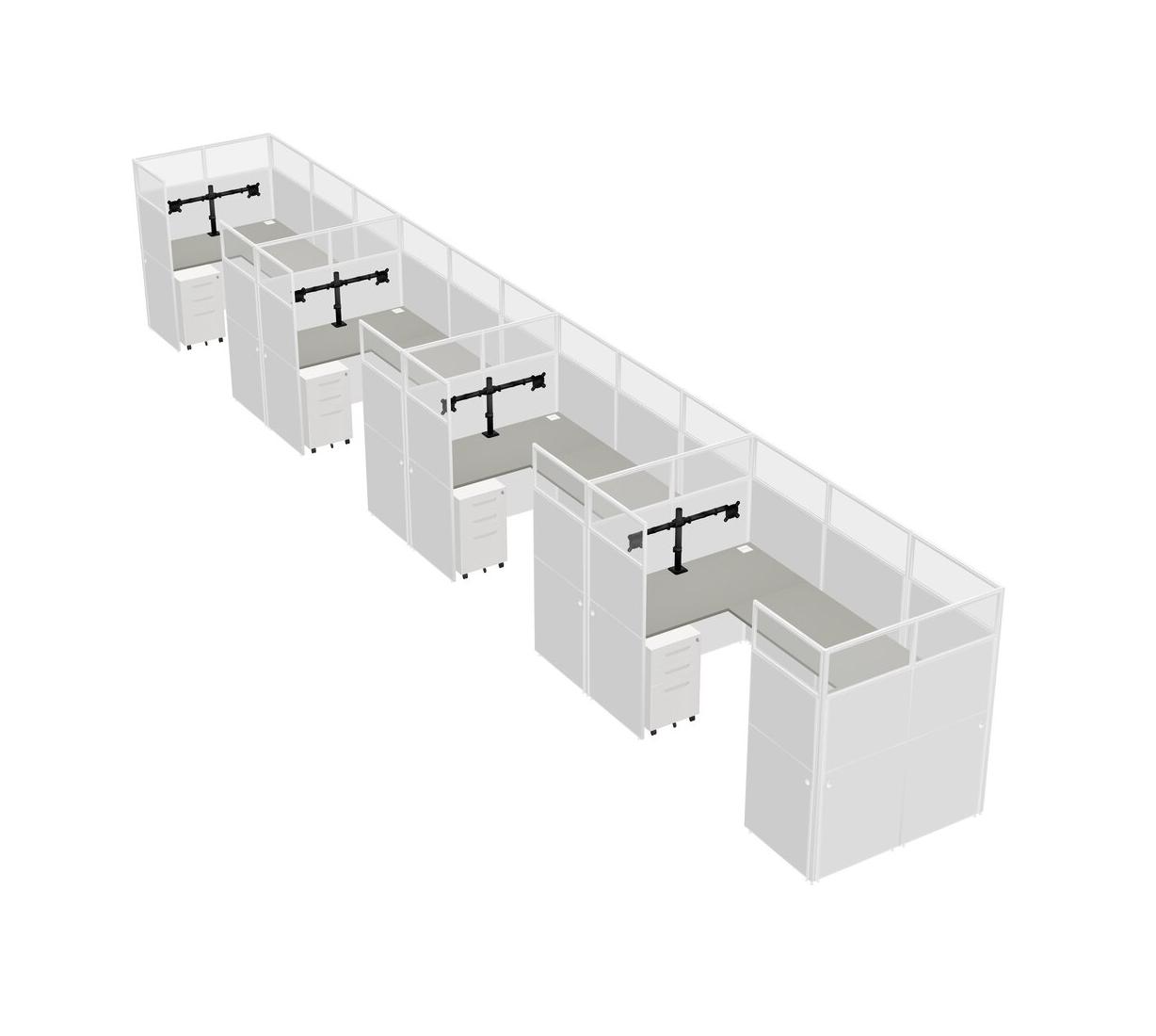 Grey Shadows U-shaped Panel System For 4 Person + Monitor Arm (double Arms) + Metal Mobile Drawers For 4 User(s)