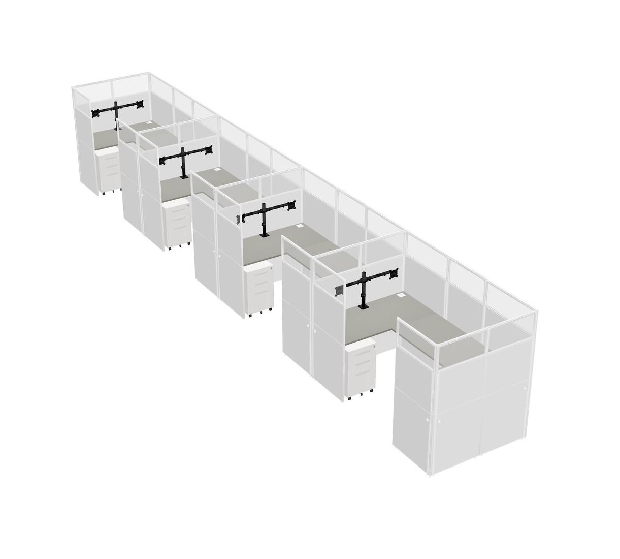 Grey Shadows U-shaped Panel System For 4 Person + Monitor Arm (double Arms) + Metal Mobile Drawers For 4 User(s)