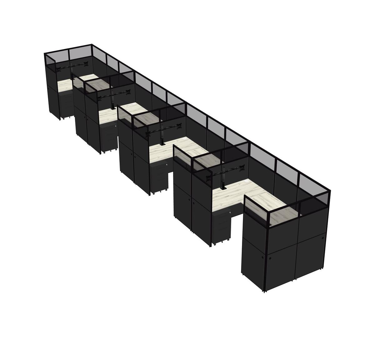 Heinne Holz U-shaped Panel System For 4 Person + Monitor Arm (double Arms) + Metal Mobile Drawers For 4 User(s)