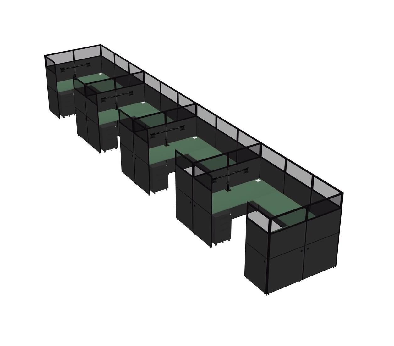 Green U-shaped Panel System For 4 Person + Monitor Arm (double Arms) + Metal Mobile Drawers For 4 User(s)