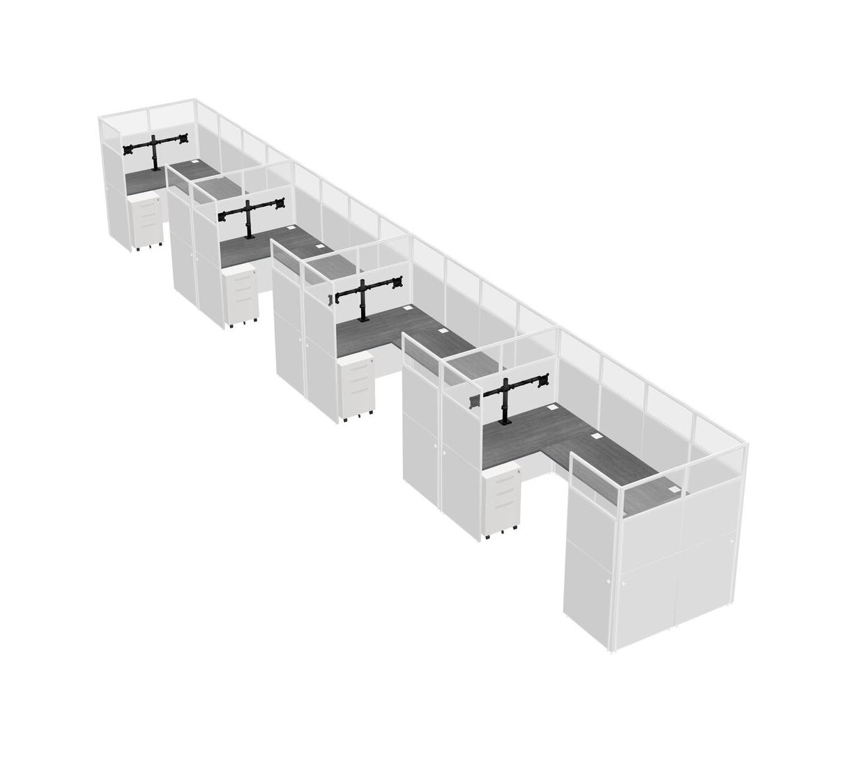 Grey U-shaped Panel System For 4 Person + Monitor Arm (double Arms) + Metal Mobile Drawers For 4 User(s)