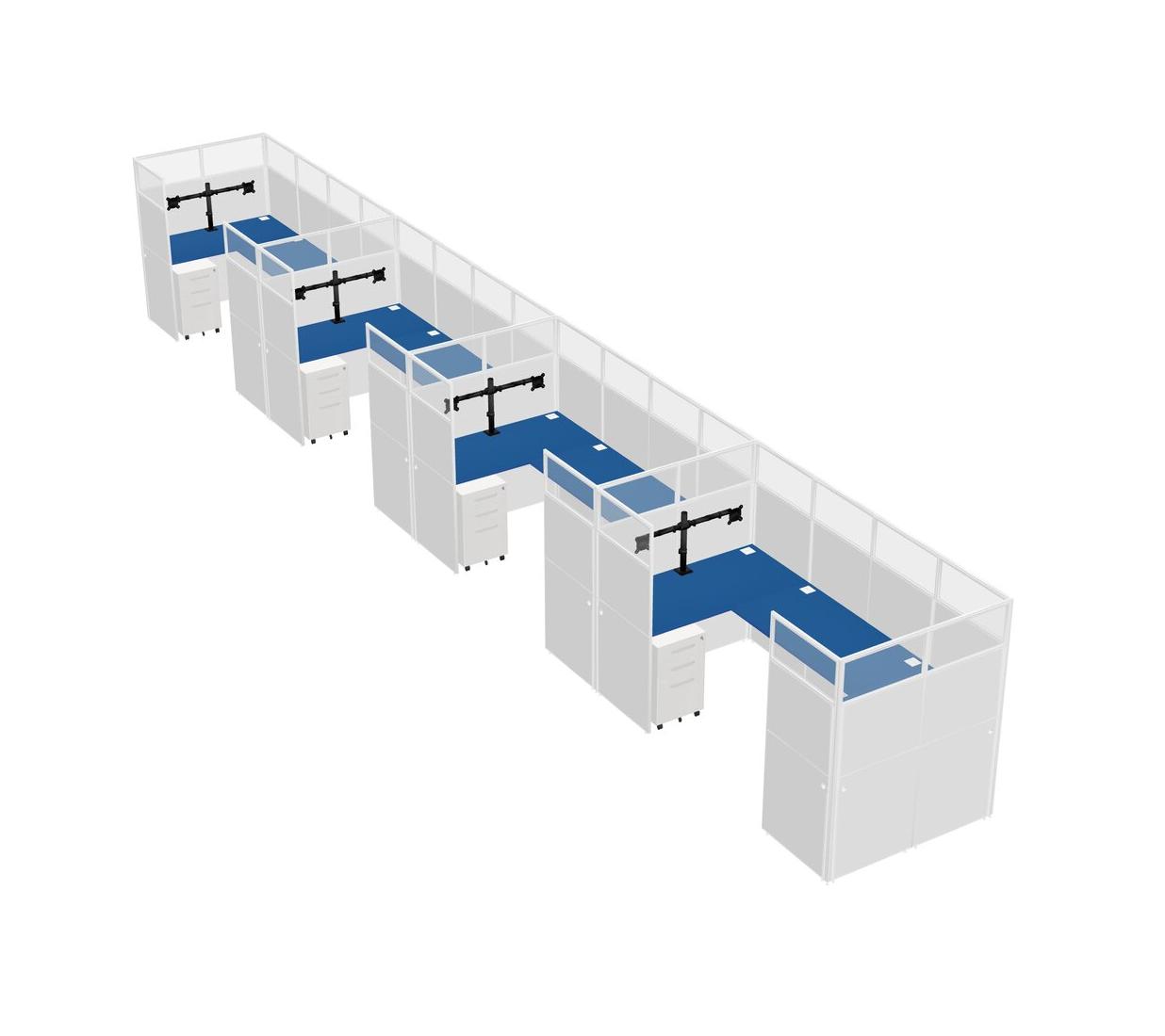 Prism Blue U-shaped Panel System For 4 Person + Monitor Arm (double Arms) + Metal Mobile Drawers For 4 User(s)