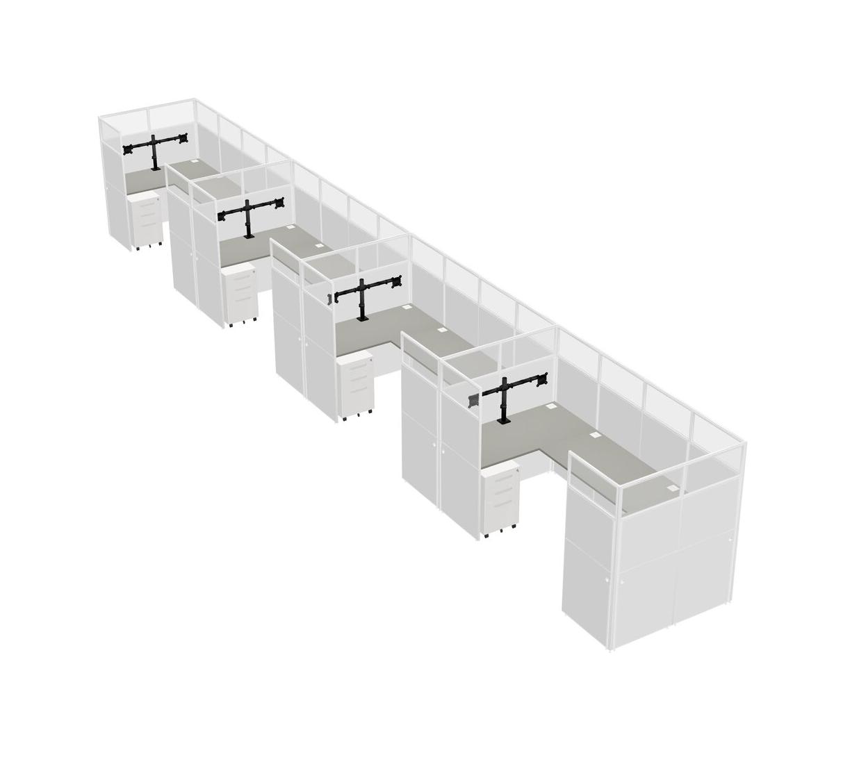 Grey Shadows U-shaped Panel System For 4 Person + Monitor Arm (double Arms) + Metal Mobile Drawers For 4 User(s)