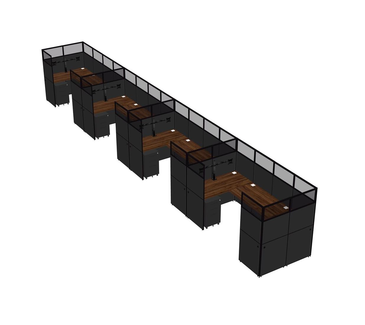 Columbia Walnut U-shaped Panel System For 4 Person + Monitor Arm (double Arms) + Metal Mobile Drawers For 4 User(s)