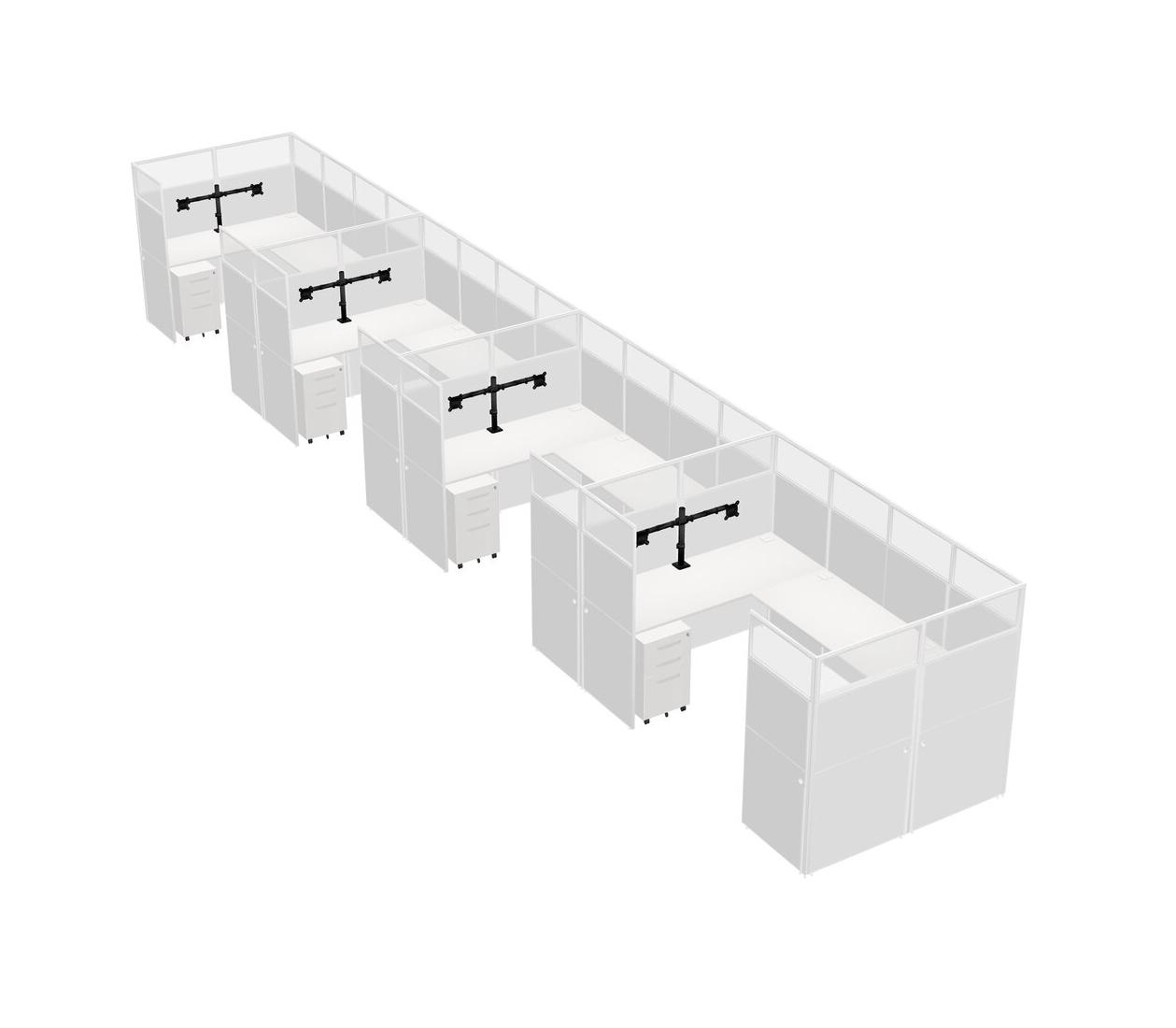White U-shaped Panel System For 4 Person + Monitor Arm (double Arms) + Metal Mobile Drawers For 4 User(s)