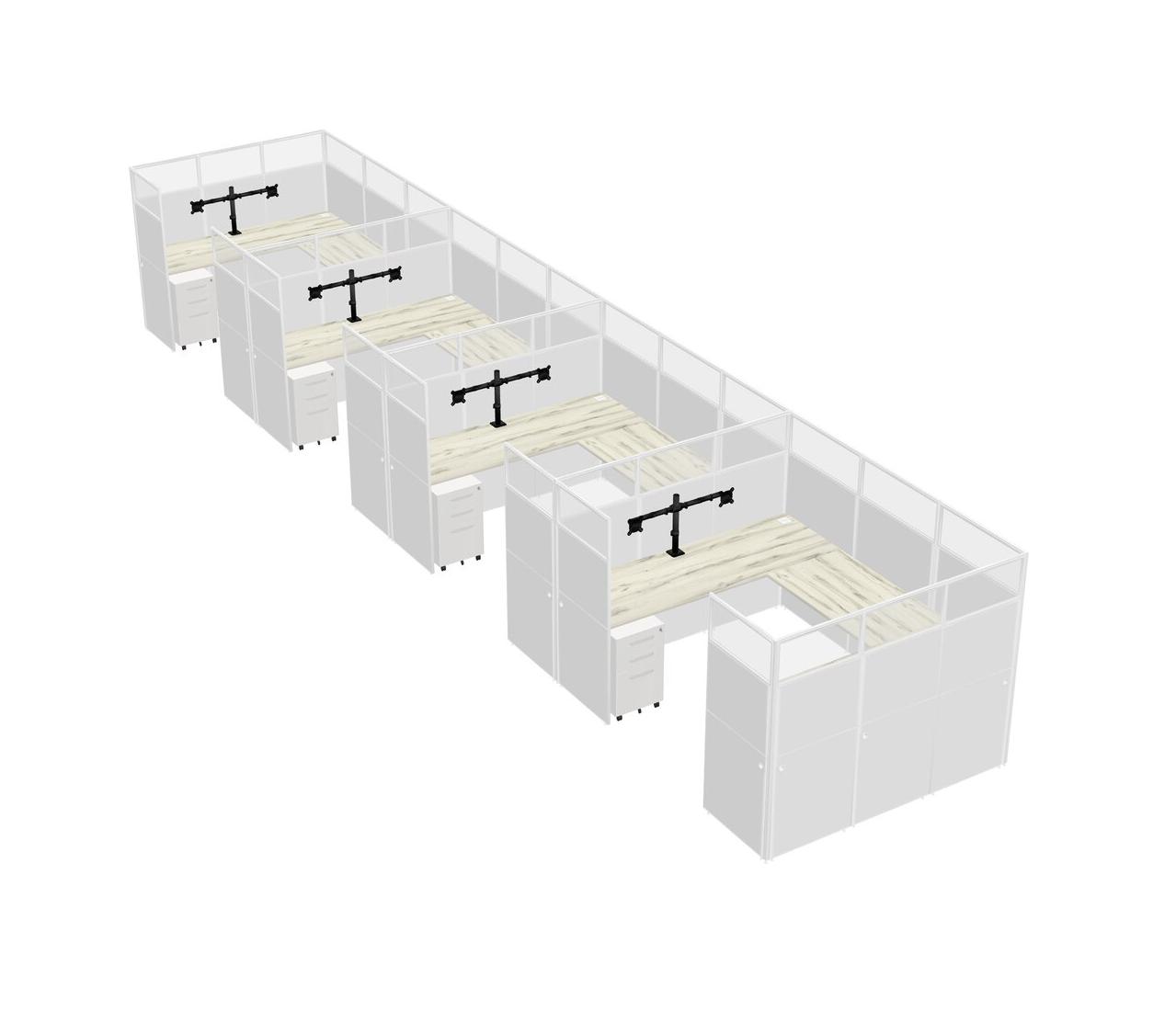 Heinne Holz U-shaped Panel System For 4 Person + Monitor Arm (double Arms) + Metal Mobile Drawers For 4 User(s)