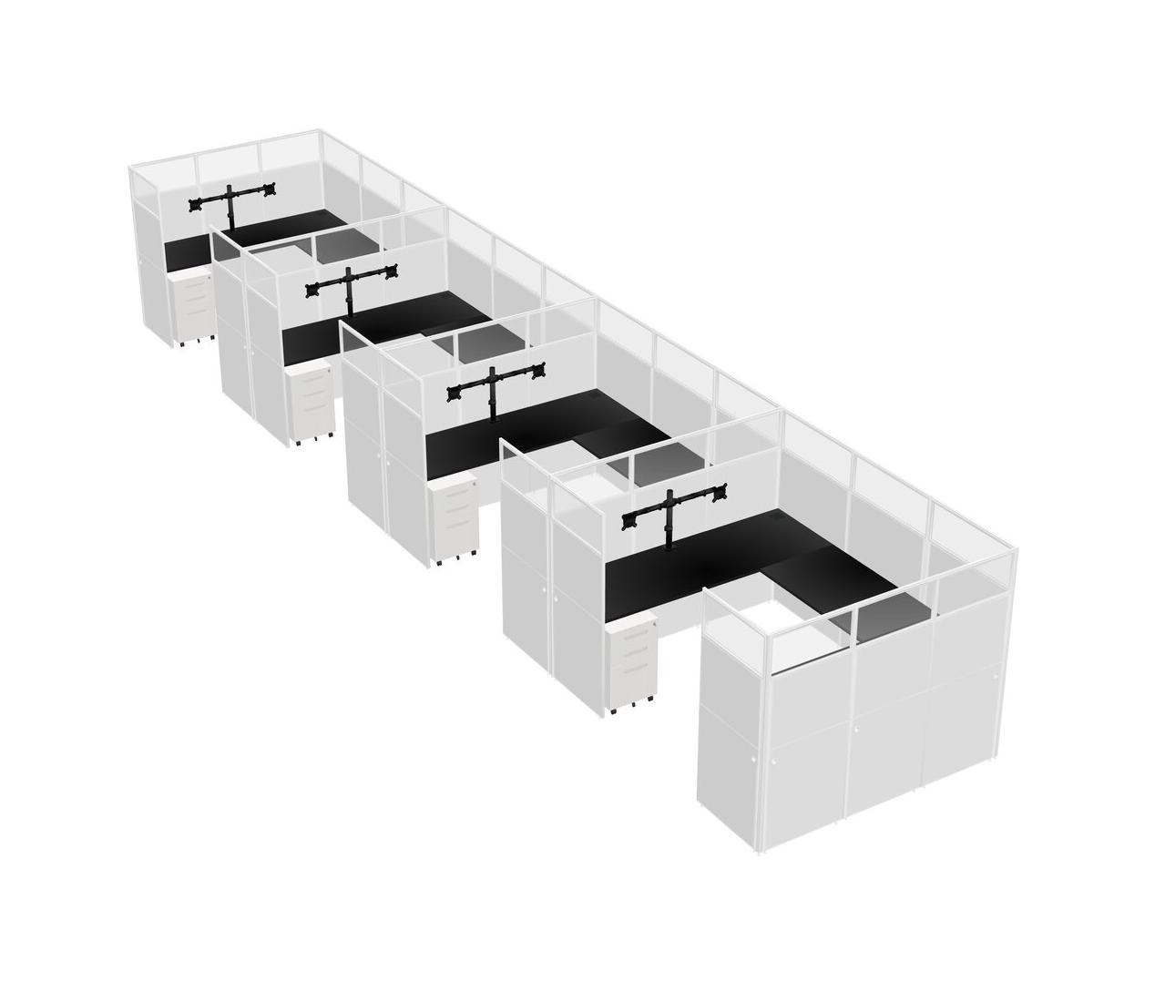 Black U-shaped Panel System For 4 Person + Monitor Arm (double Arms) + Metal Mobile Drawers For 4 User(s)