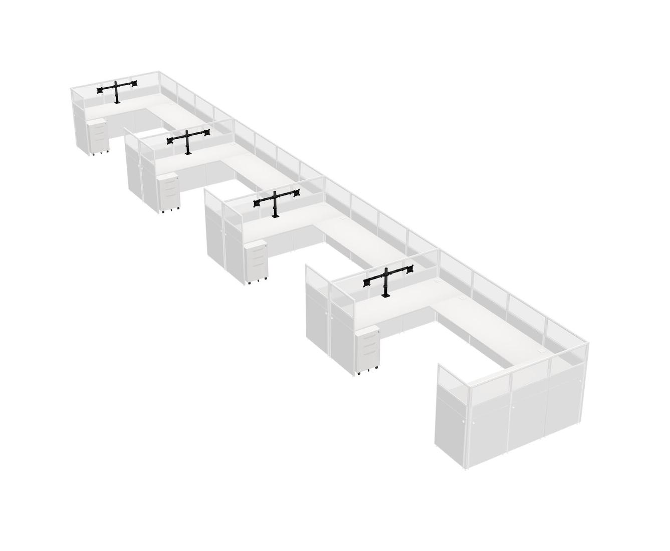 White U-shaped Panel System For 4 Person + Monitor Arm (double Arms) + Metal Mobile Drawers For 4 User(s)