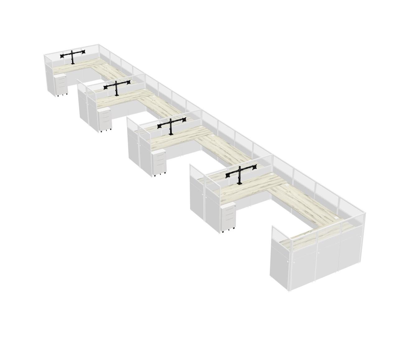 Heinne Holz U-shaped Panel System For 4 Person + Monitor Arm (double Arms) + Metal Mobile Drawers For 4 User(s)