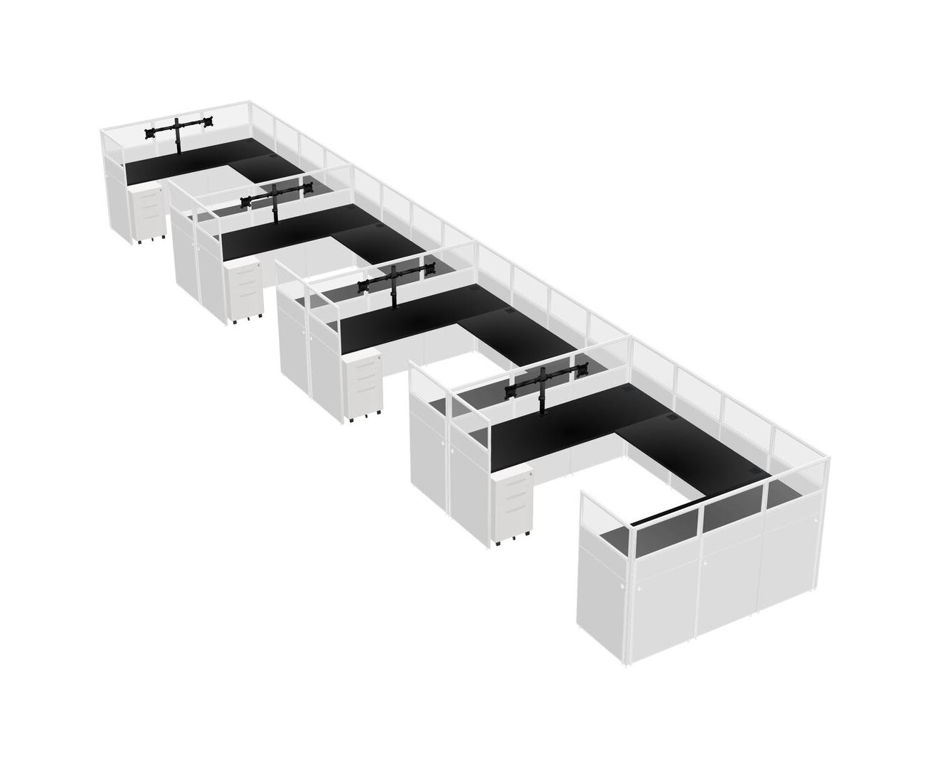 Black U-shaped Panel System For 4 Person + Monitor Arm (double Arms) + Metal Mobile Drawers For 4 User(s)