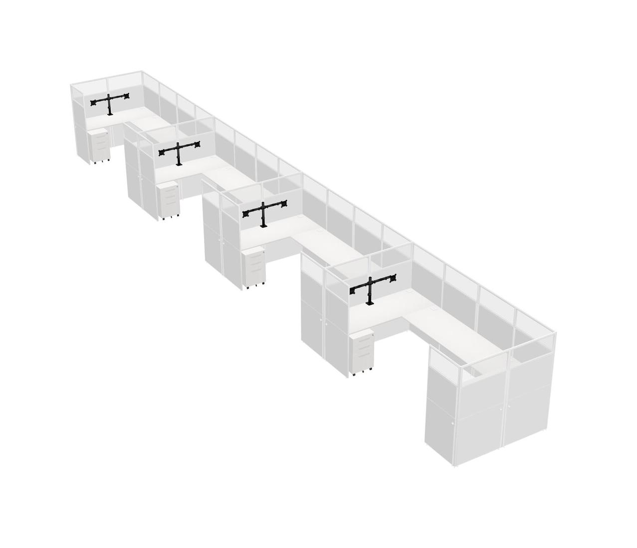 White U-shaped Panel System For 4 Person + Monitor Arm (double Arms) + Metal Mobile Drawers For 4 User(s)
