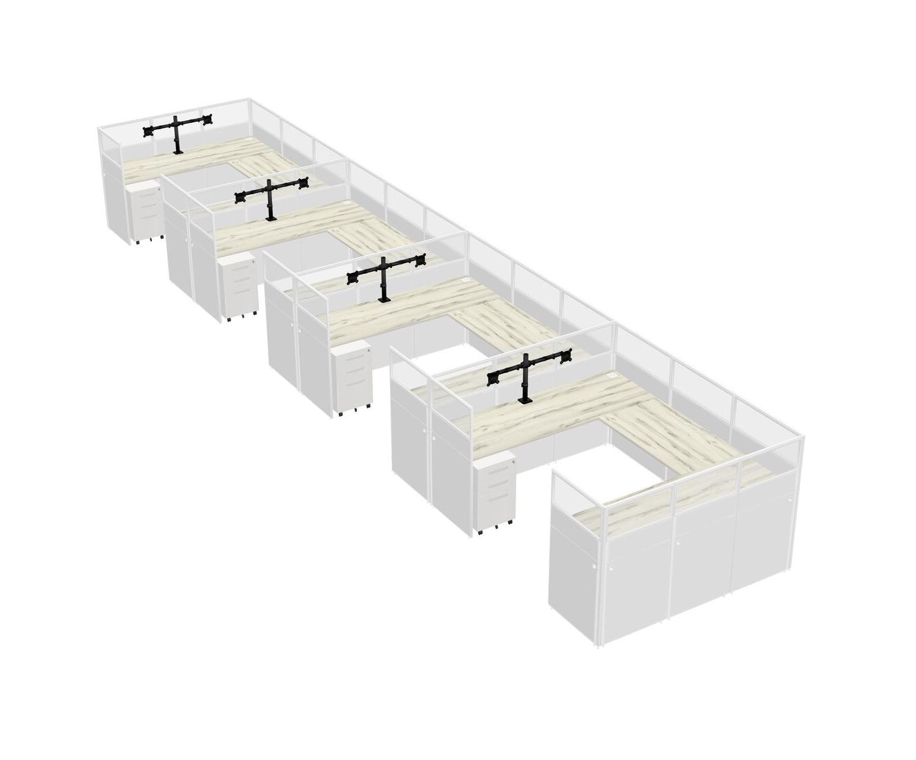Heinne Holz U-shaped Panel System For 4 Person + Monitor Arm (double Arms) + Metal Mobile Drawers For 4 User(s)