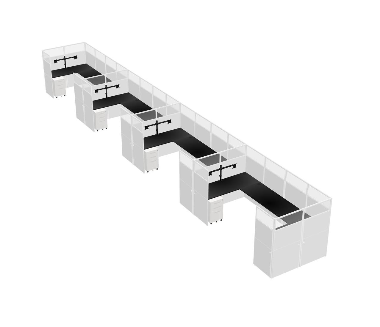Black U-shaped Panel System For 4 Person + Monitor Arm (double Arms) + Metal Mobile Drawers For 4 User(s)