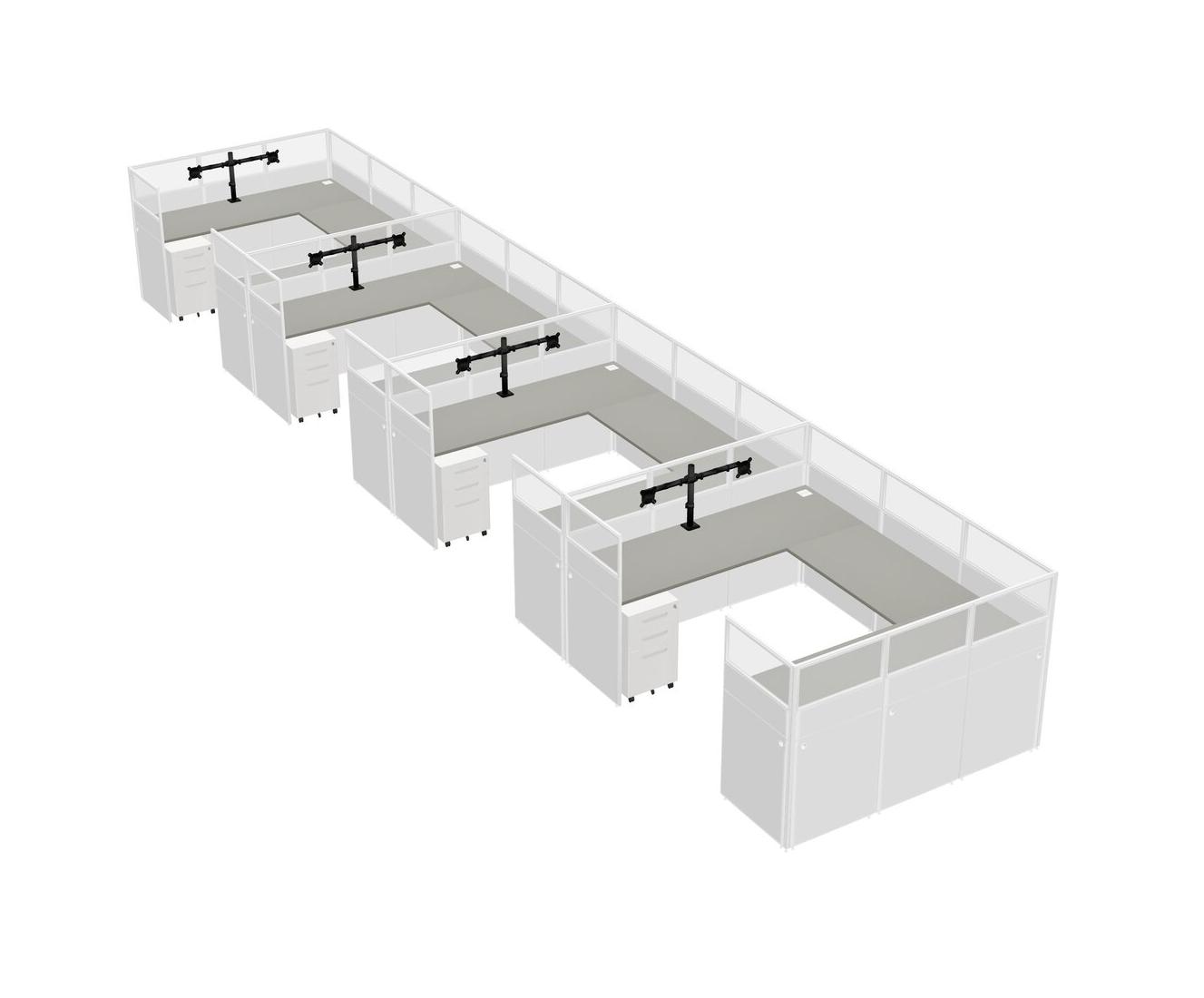 Grey Shadows U-shaped Panel System For 4 Person + Monitor Arm (double Arms) + Metal Mobile Drawers For 4 User(s)