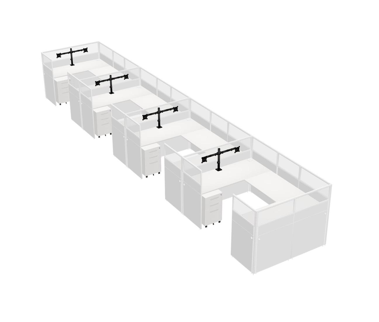 White U-shaped Panel System For 4 Person + Monitor Arm (double Arms) + Metal Mobile Drawers For 4 User(s)