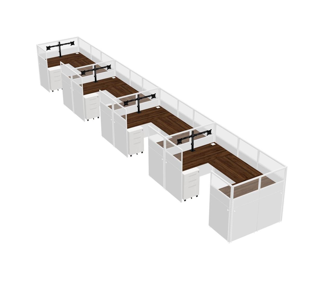 Columbia Walnut U-shaped Panel System For 4 Person + Monitor Arm (double Arms) + Metal Mobile Drawers For 4 User(s)