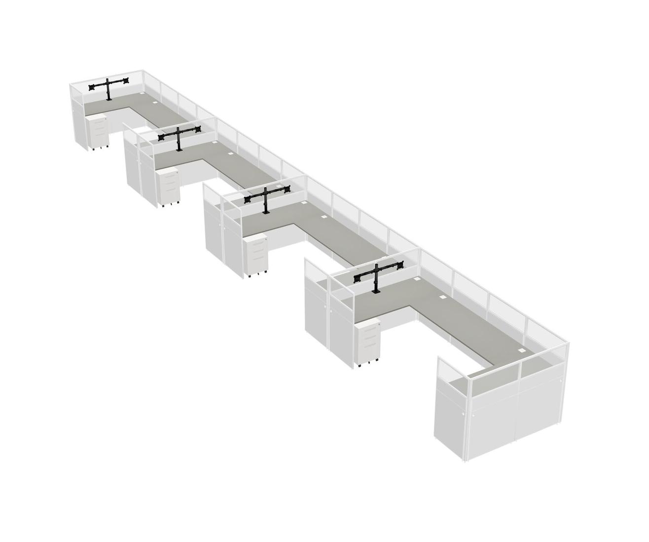 Grey Shadows U-shaped Panel System For 4 Person + Monitor Arm (double Arms) + Metal Mobile Drawers For 4 User(s)