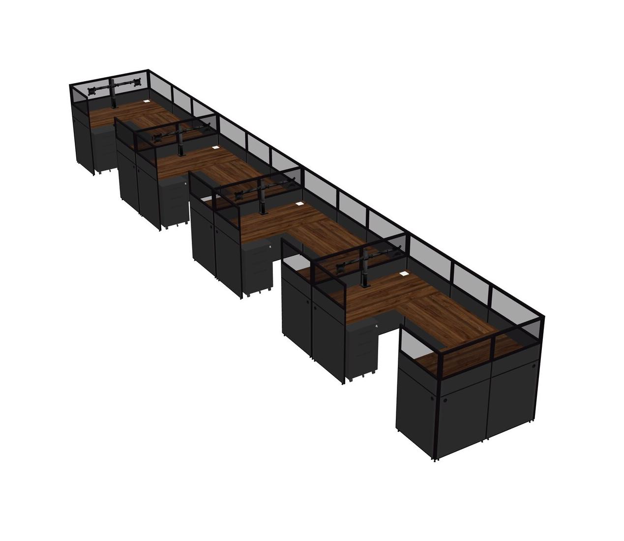 Columbia Walnut U-shaped Panel System For 4 Person + Monitor Arm (double Arms) + Metal Mobile Drawers For 4 User(s)