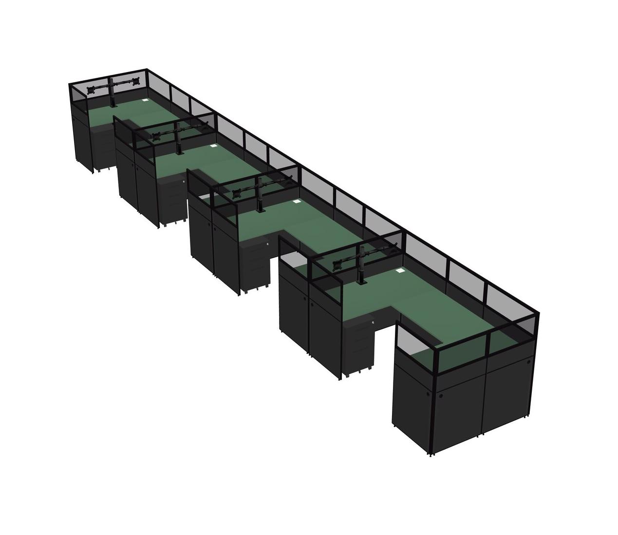 Green U-shaped Panel System For 4 Person + Monitor Arm (double Arms) + Metal Mobile Drawers For 4 User(s)