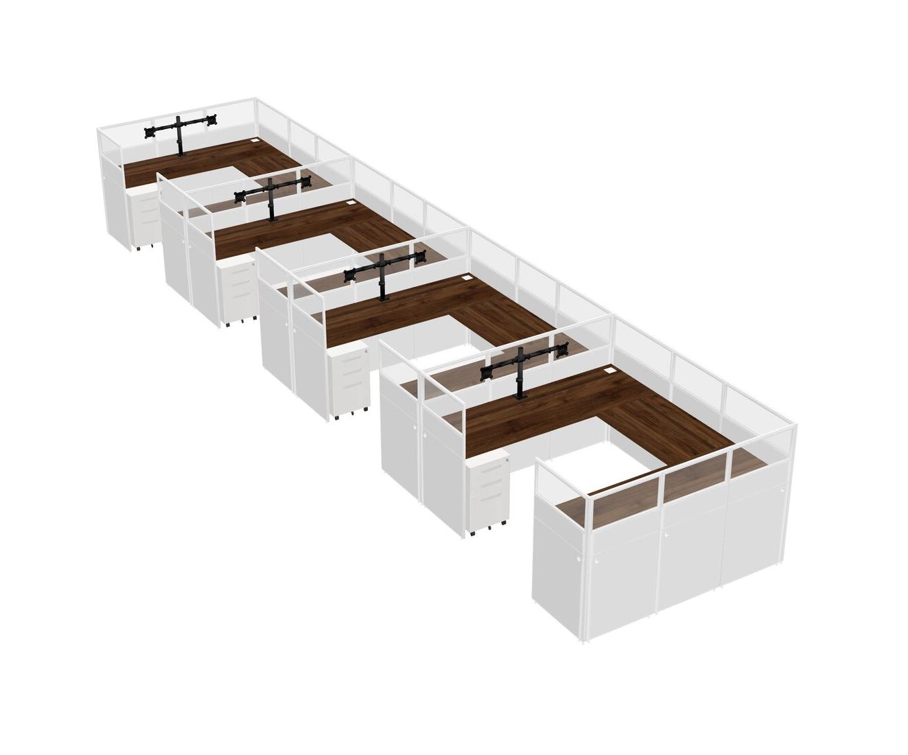 Columbia Walnut U-shaped Panel System For 4 Person + Monitor Arm (double Arms) + Metal Mobile Drawers For 4 User(s)