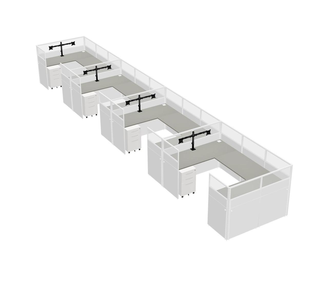 Grey Shadows U-shaped Panel System For 4 Person + Monitor Arm (double Arms) + Metal Mobile Drawers For 4 User(s)