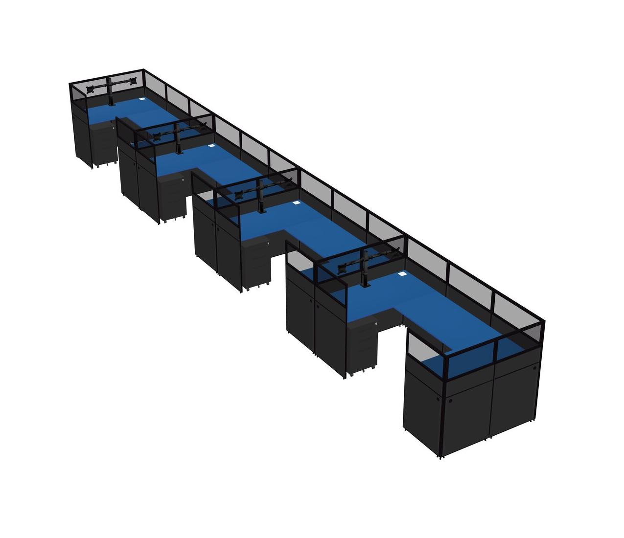 Prism Blue U-shaped Panel System For 4 Person + Monitor Arm (double Arms) + Metal Mobile Drawers For 4 User(s)