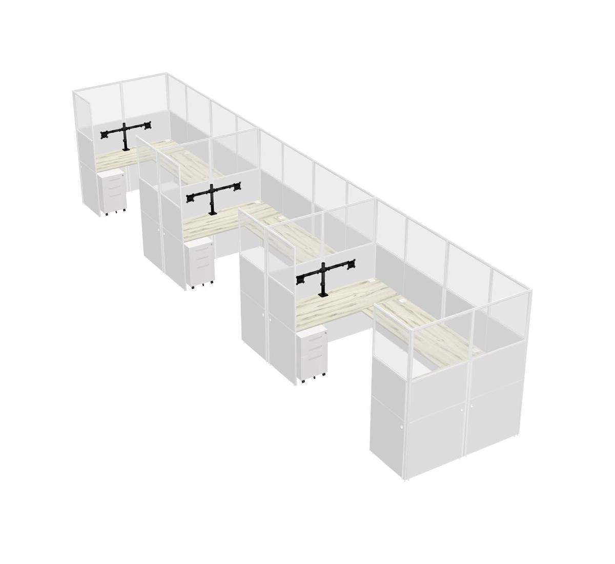 Heinne Holz U-shaped Panel System For 3 Person + Monitor Arm (double Arms) + Metal Mobile Drawers For 3 User(s)