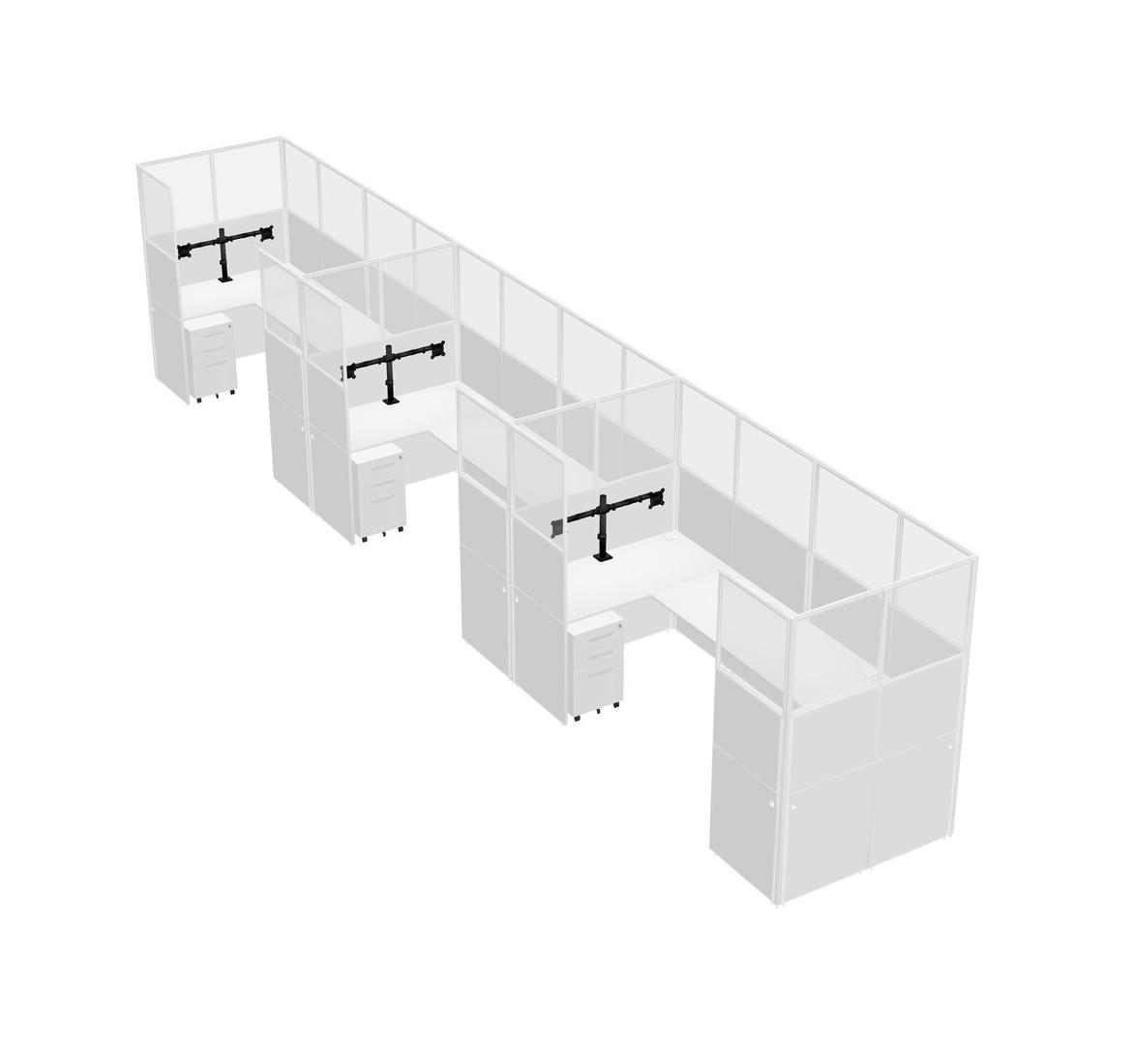 White U-shaped Panel System For 3 Person + Monitor Arm (double Arms) + Metal Mobile Drawers For 3 User(s)